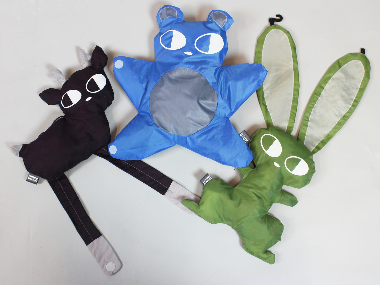 Backyard Buddies are a series of stuffed animals made from repurposed camping tent fabric. They are specifically designed to withstand outdoor play and were originally inspired by existing stuffed animals that often get dirty and worn from play. Each Backyard Buddy takes inspiration from their designated animal's anatomy to design a fun visual language that also aids in a specific function (sleep, wear, carry, etc.).They are designed to be fully sustainable by also using tent and sewing scraps as the stuffing, leading to an almost zero-waste manufacturing process.September-December 2024