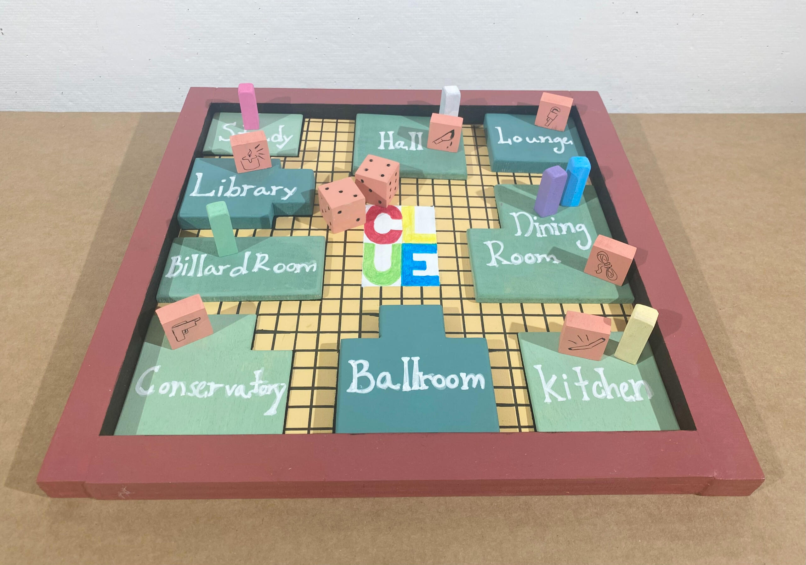 OverviewModern and three-dimensional take on the infamous game of "Clue". Made entirely of wood and hand painted with acrylic paints.Timeline: April 2022