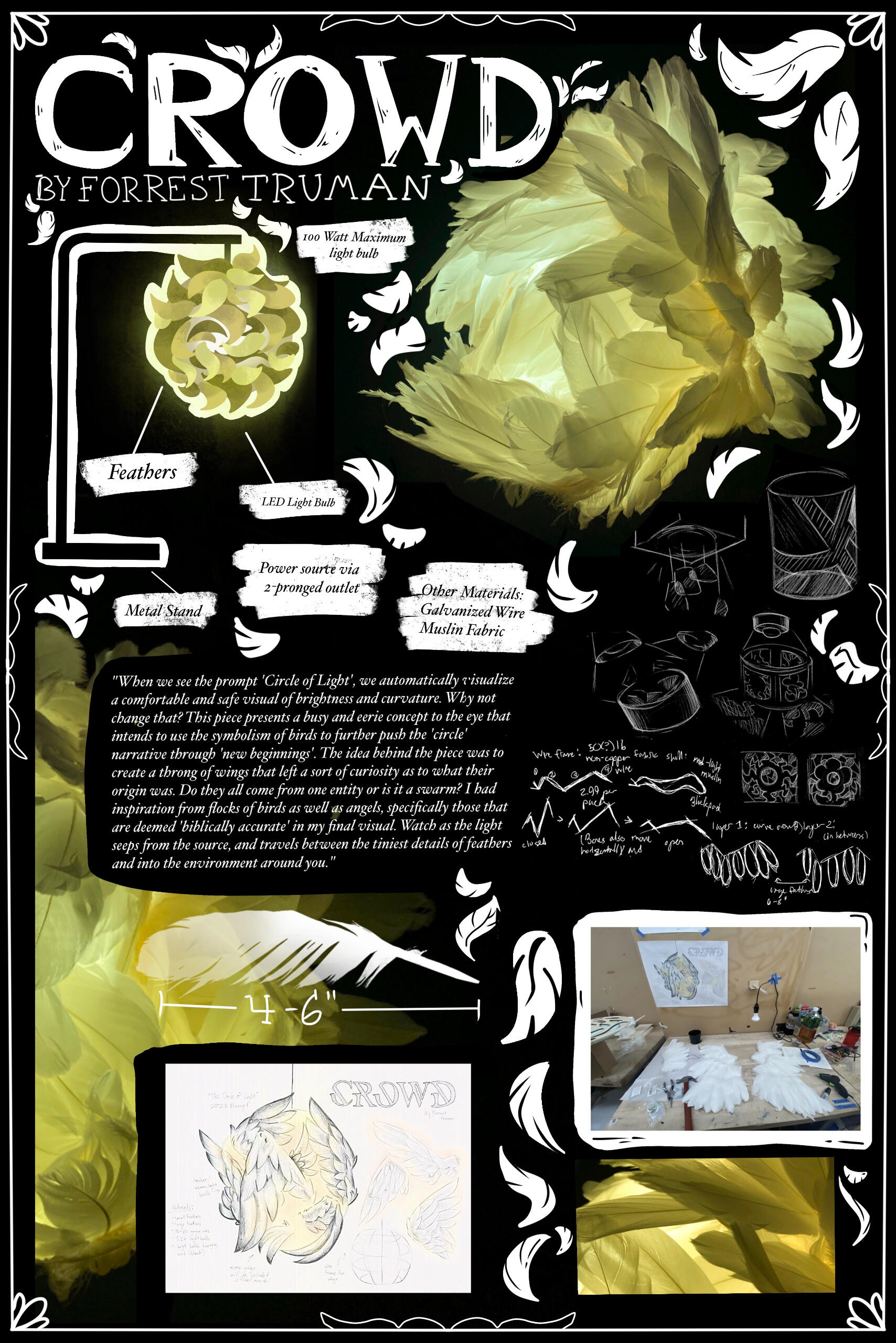 'CROWD' is a lighting piece that attempts to emulate a mass of wings either coming from one unknown creature or a swarm of them, the being up to the viewer. It hopes to emit an uneasy and chaotic feeling.Entry in the 2023 IESNYC Student Lighting Competition.March 2023