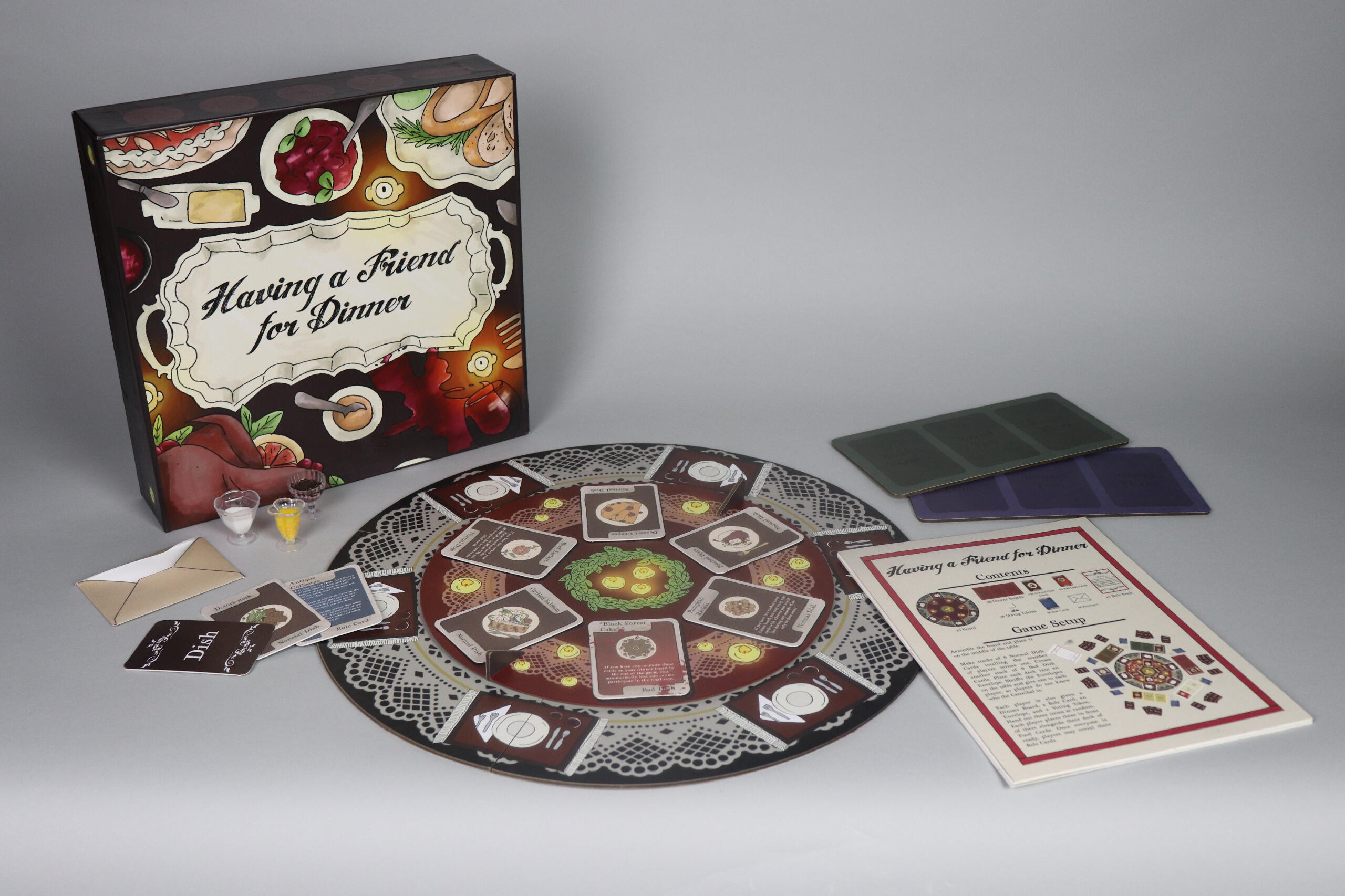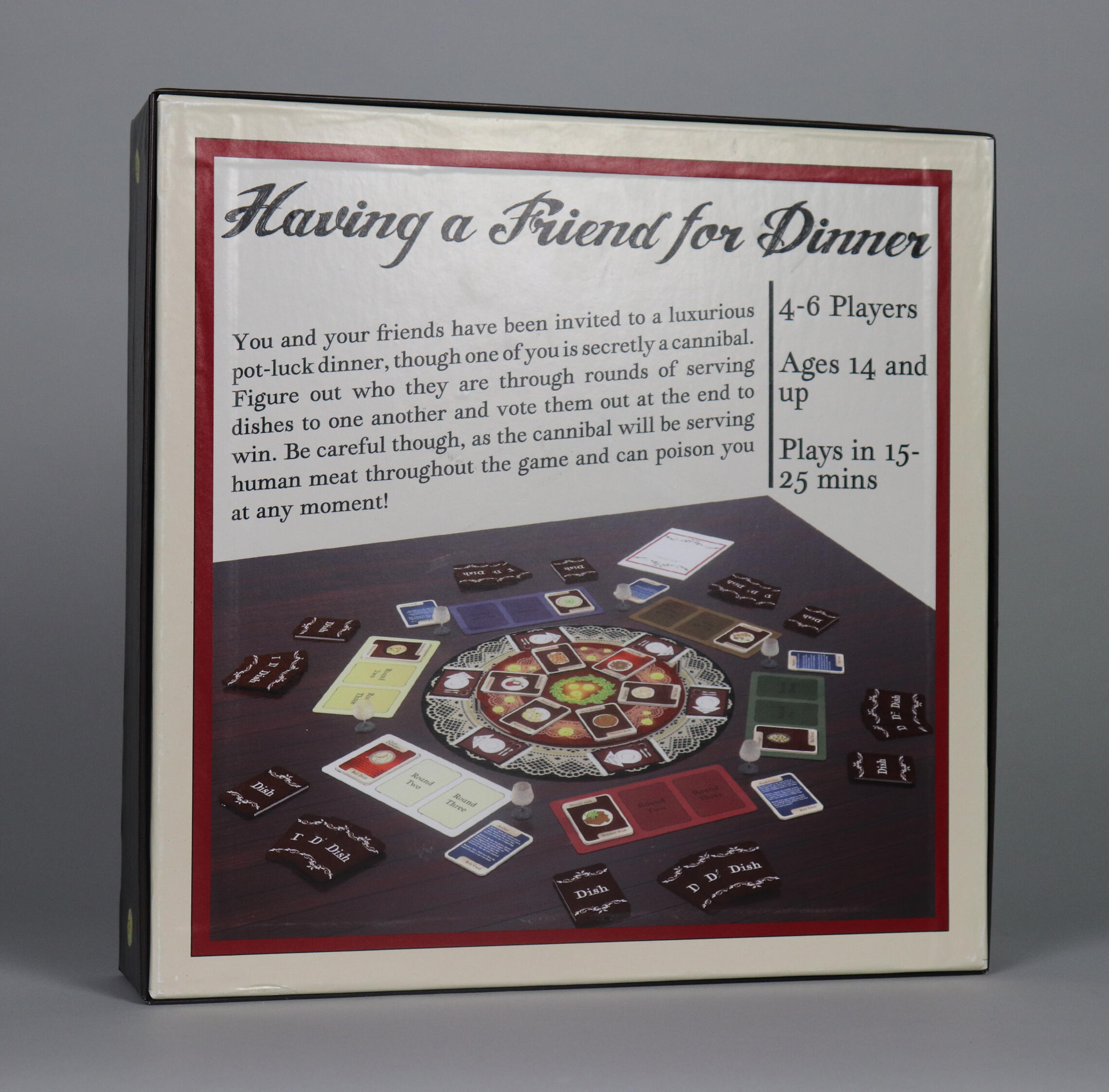 OverviewYou and your friends have been invited to a luxurious pot-luck dinner, though one of you is secretly a cannibal. Figure out who they are through rounds of serving dishes to one another and vote them out at the end to win. Be careful though, as the cannibal will be serving human meat throughout the game and can poison you at any moment!Timeline: October-December 2023