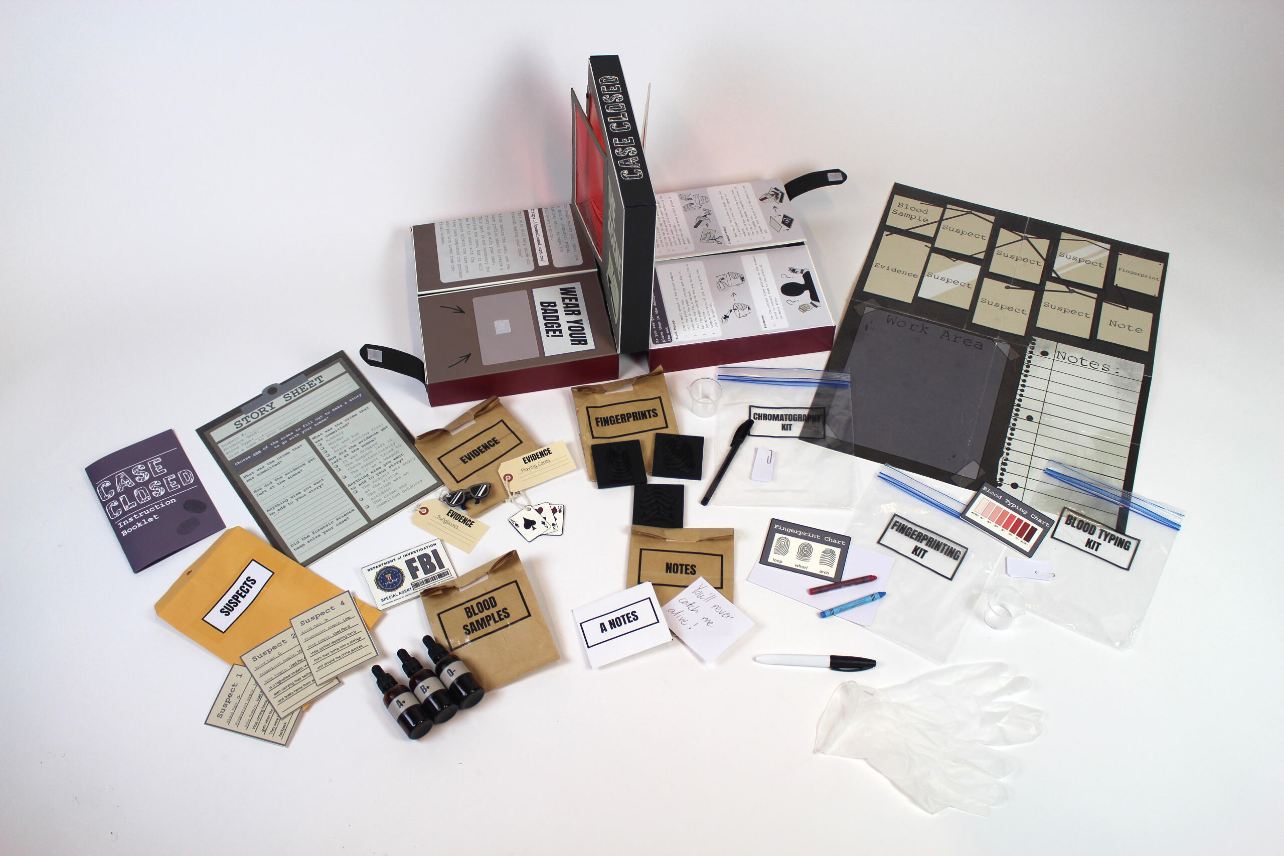 -Fun!Case Closed is a forensic science-based activity kit. The kit acts as a game that takes place in two parts: making crime scenes and solving them.Timeline: February-April 2024