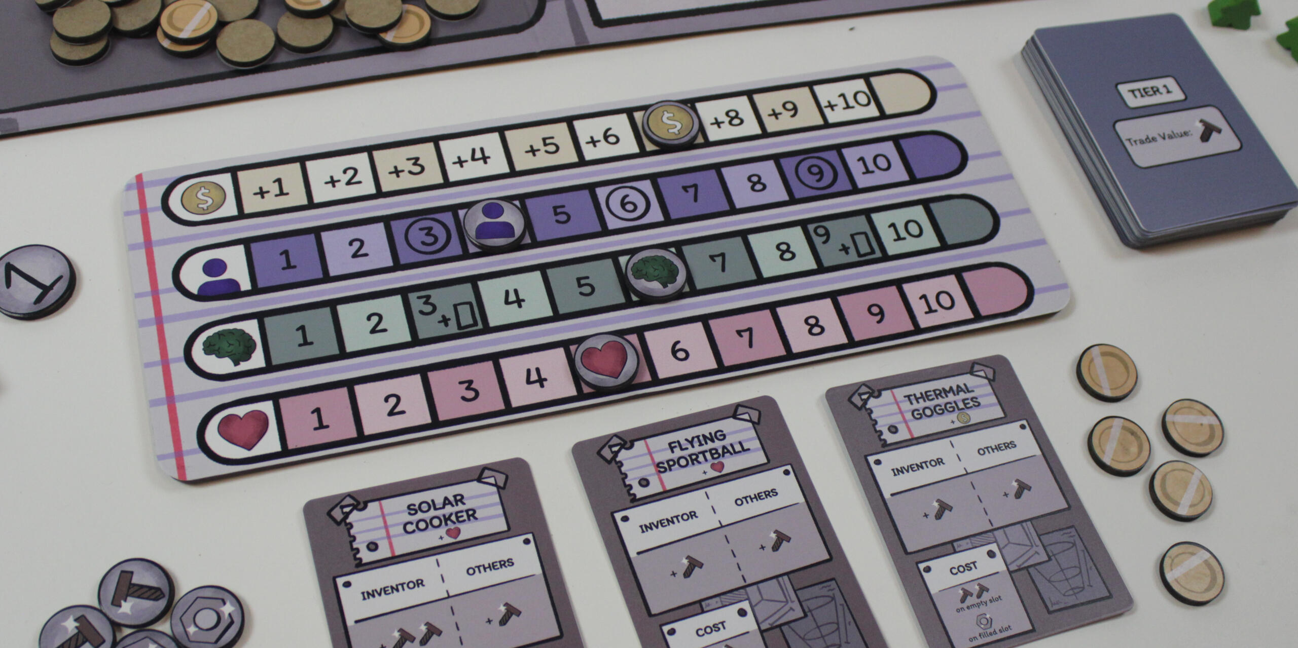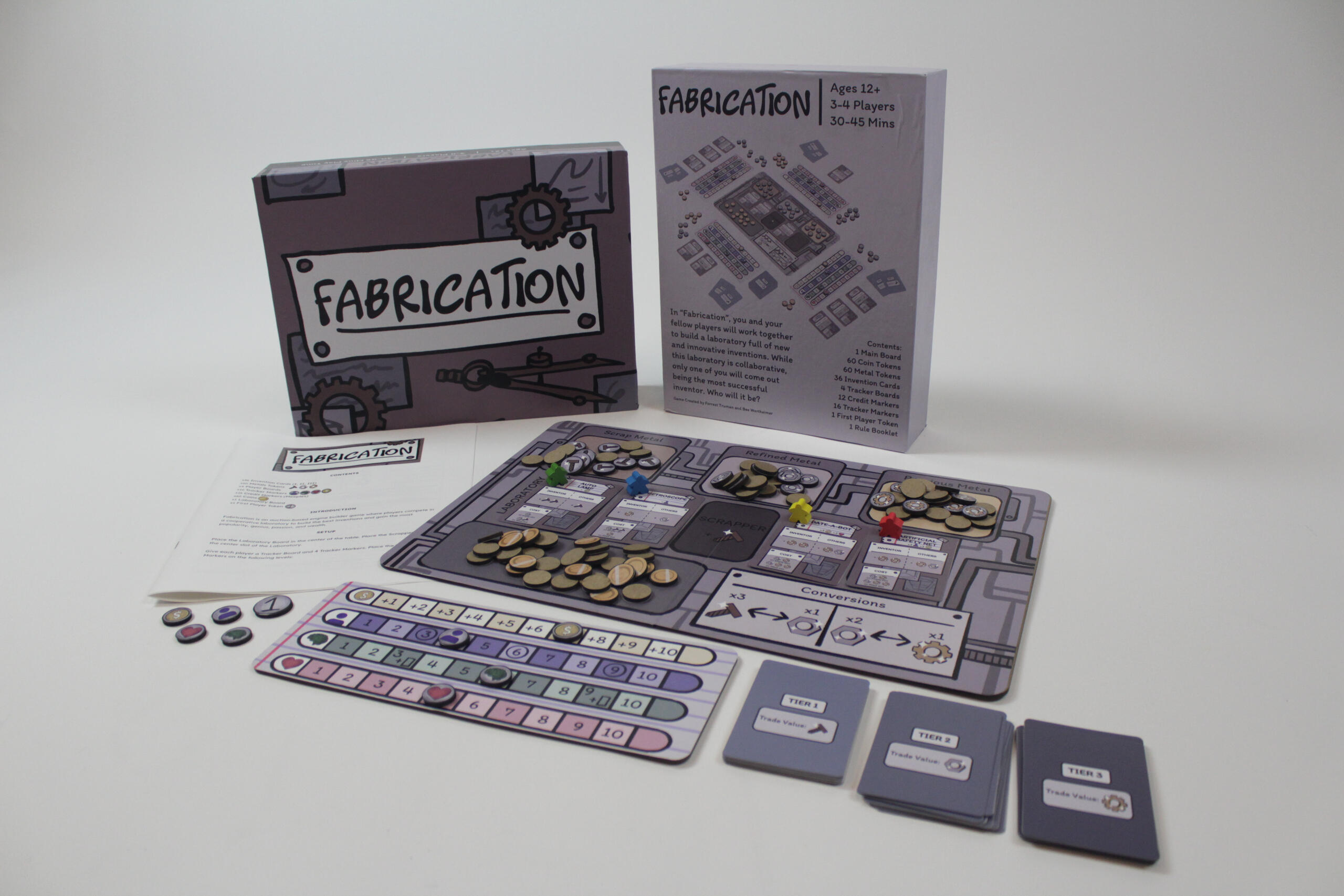 OverviewFabrication is an engine builder auction-style game where players are inventors working in a collaborative laboratory too build inventions and be the most successful.Fabrication was made with Bee Wertheimer.Timeline: April - May 2025