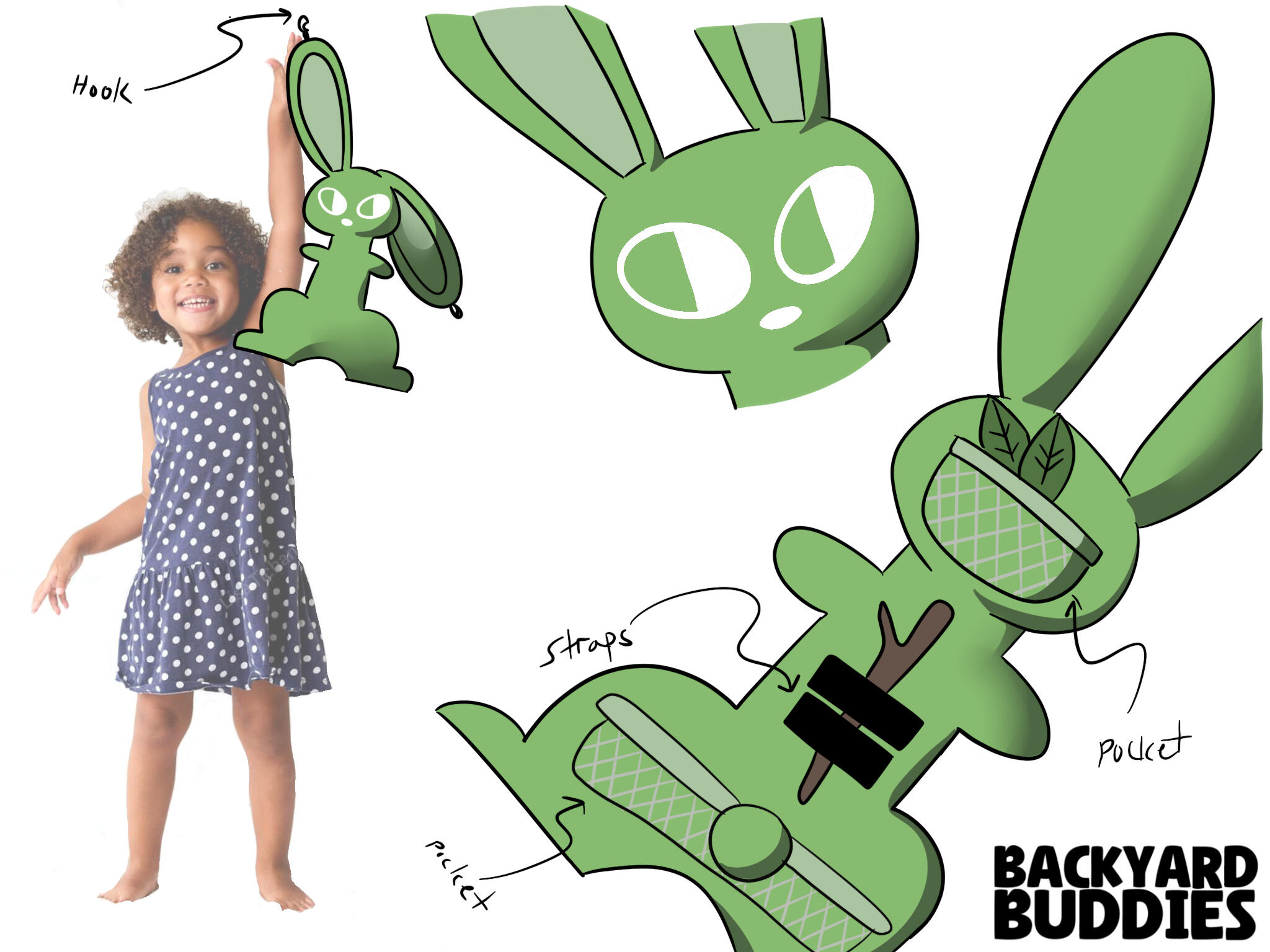 Backyard Buddies are a series of stuffed animals made from repurposed camping tent fabric. They are specifically designed to withstand outdoor play and were originally inspired by existing stuffed animals that often get dirty and worn from play. Each Backyard Buddy takes inspiration from their designated animal's anatomy to design a fun visual language that also aids in a specific function (sleep, wear, carry, etc.).They are designed to be fully sustainable by also using tent and sewing scraps as the stuffing, leading to an almost zero-waste manufacturing process.September-December 2024